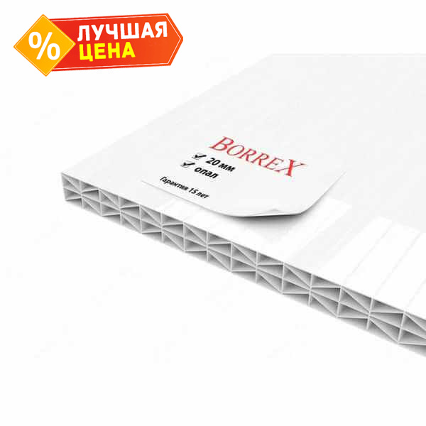 Сотовый поликарбонат 20 мм BORREX опал 2100х6000 мм - это прочный и легкий материал, который отлично подходит для использования в различных строительных и дизайнерских проектах. Поликарбонат обладает высокой прочностью и устойчивостью к воздействию внешних факторов, что делает его идеальным выбором для создания крыш, навесов, ограждений и других конструкций.