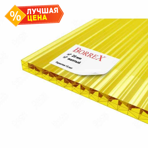 Сотовый поликарбонат 20 мм BORREX желтый 2100х6000 мм