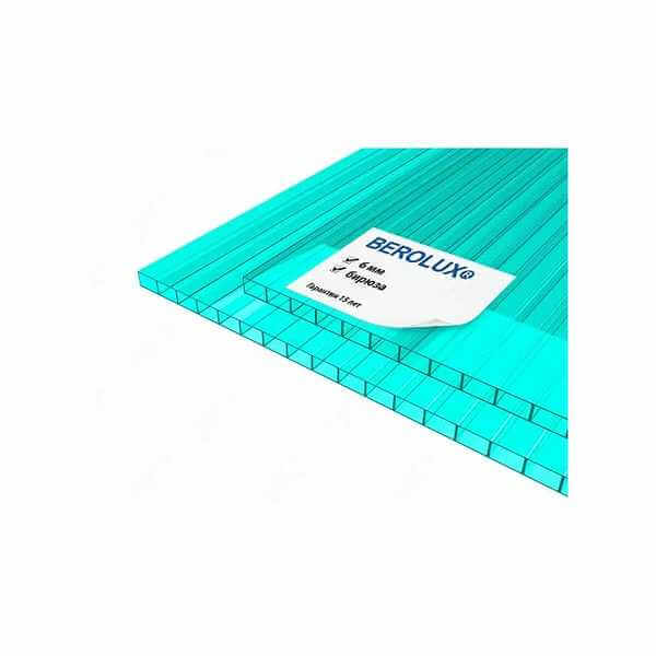 Сотовый поликарбонат 6 мм BEROLUX бирюза 2100х6000 мм