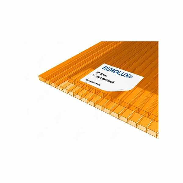 Сотовый поликарбонат 6 мм BEROLUX оранжевый 2100х6000 мм