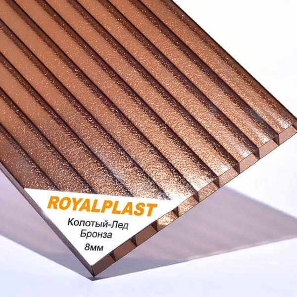 Сотовый поликарбонат 8 мм ROYALPLAST 2-UV колотый лед премиум бронза 2100х6000 мм