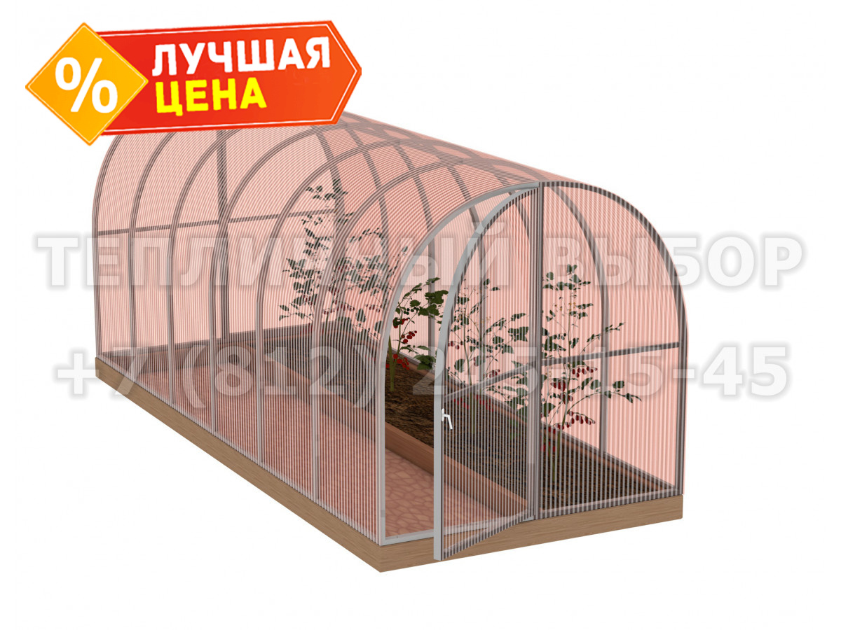 Теплица из поликарбоната-фито Усиленная Арочная 1,6х4 h=1.68 м профиль 20х20 мм