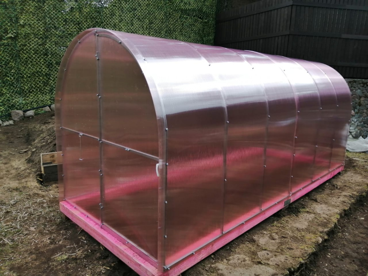 В разобранном виде теплица состоит из отдельных сварных рам в виде дуги. Транспортные габариты 2000х1700 мм.