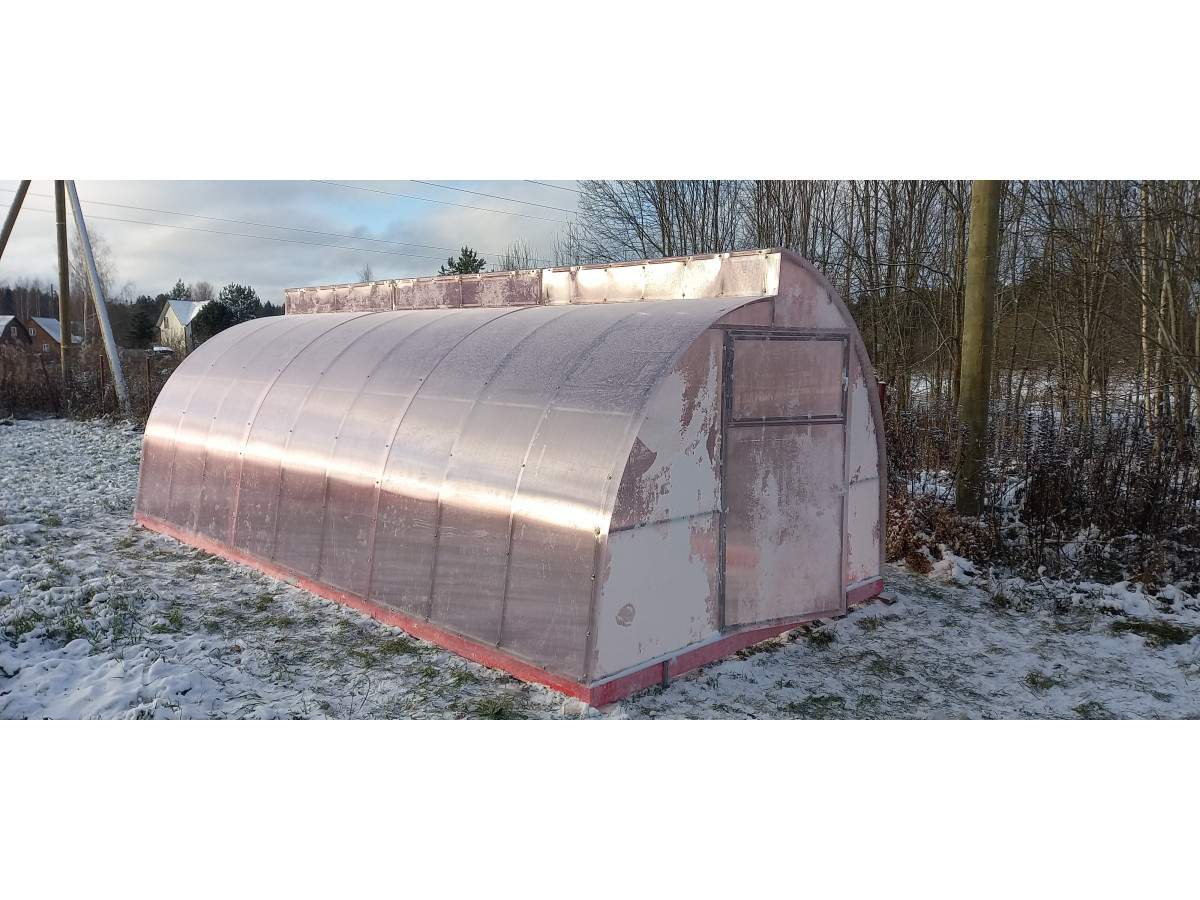• поликарбонат толщиной 4 мм (в транспортном состоянии свёрнутые в рулон листы имеют диаметр до 80 см и длину 2.1 м);