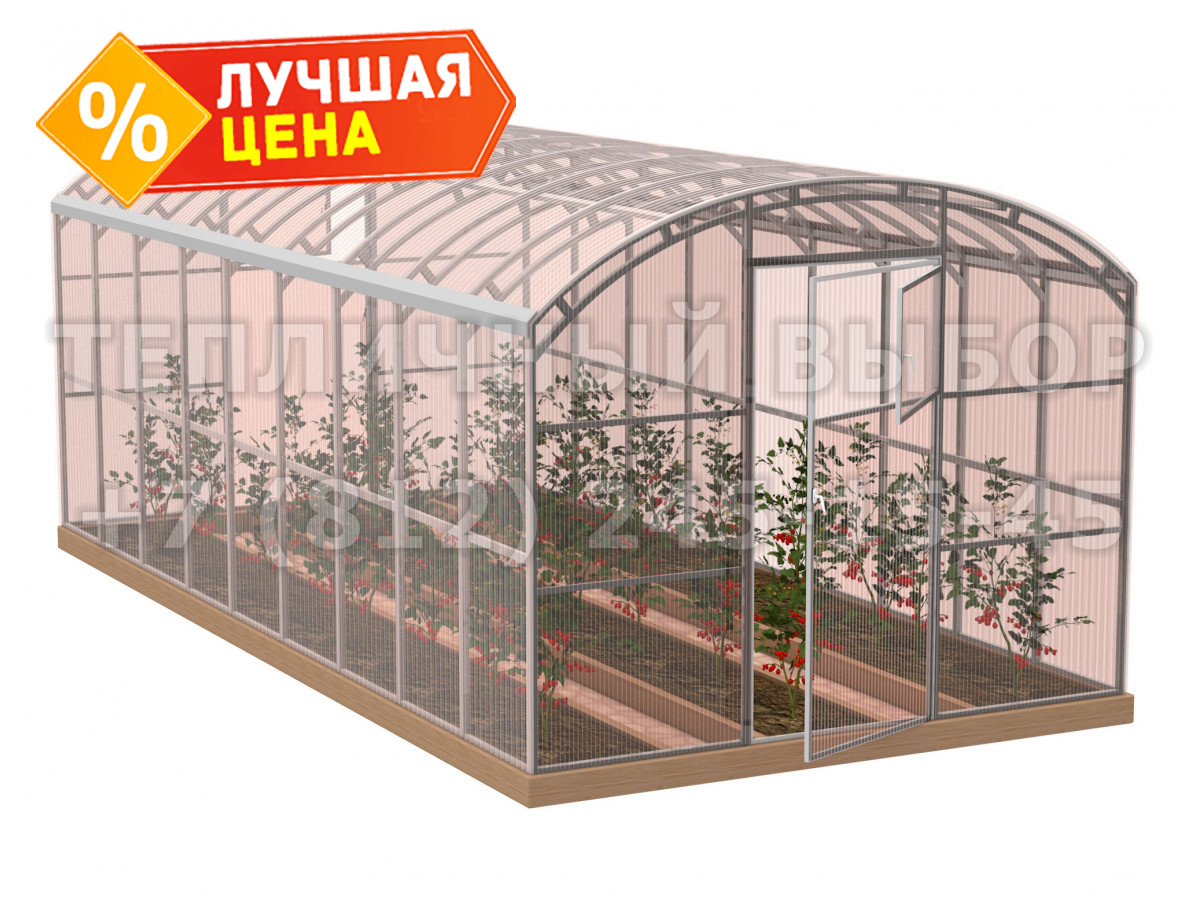 Теплица из поликарбоната-фито Усиленная Прямостенная 2,5х6 h=2.1 м профиль 20х40 мм