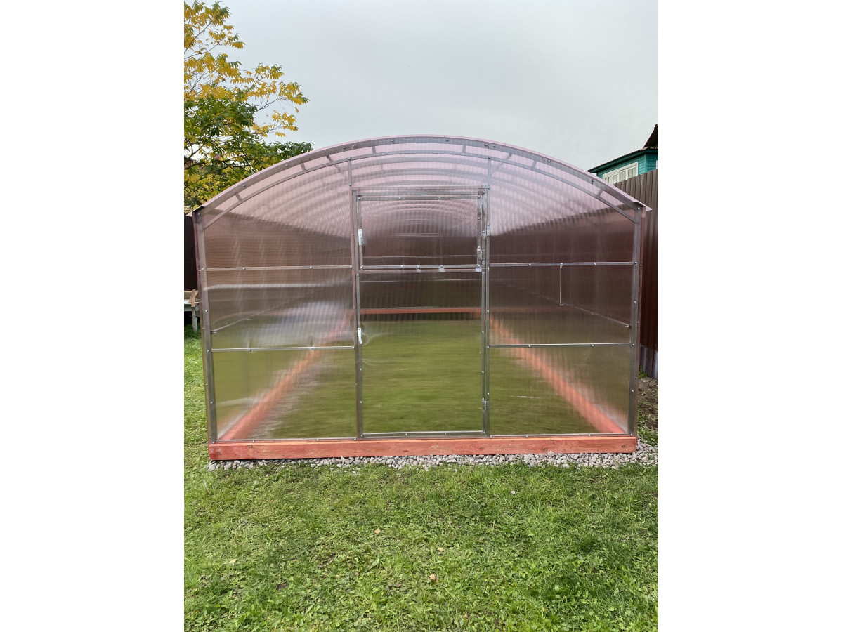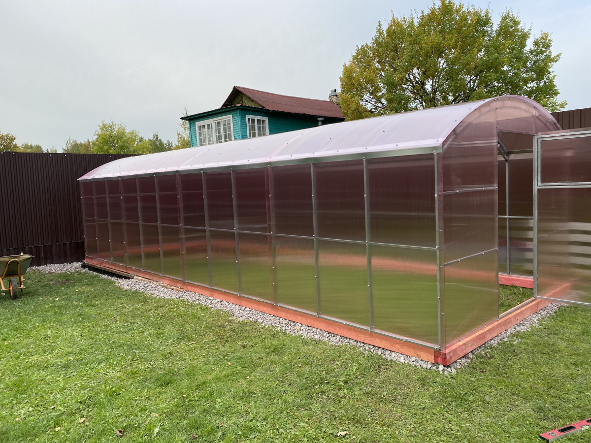 Возможна самостоятельная сборка по подробной инструкции. Сборка теплицы монтажниками-профессионалами компании занимает порядка 3 часов. В качестве основания рекомендуется использовать бетонный, либо деревянный фундамент из бруса. Предварительно брус необходимо обработать антисептиком. Полный комплект состоит из: