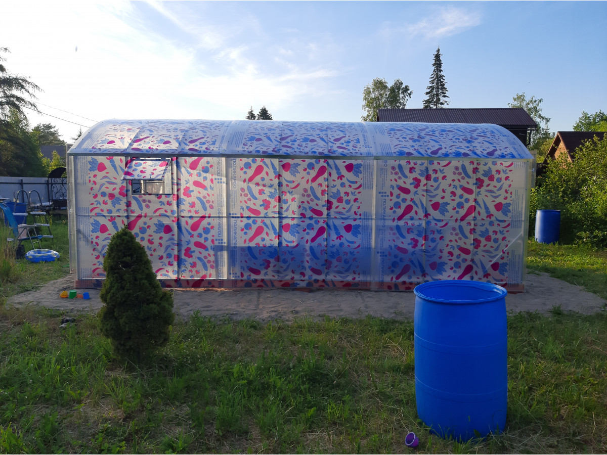 • широкая 4 м, ширина теплицы позволяет организовать 3 широкие полноценные грядки с комфортными проходами между ними;