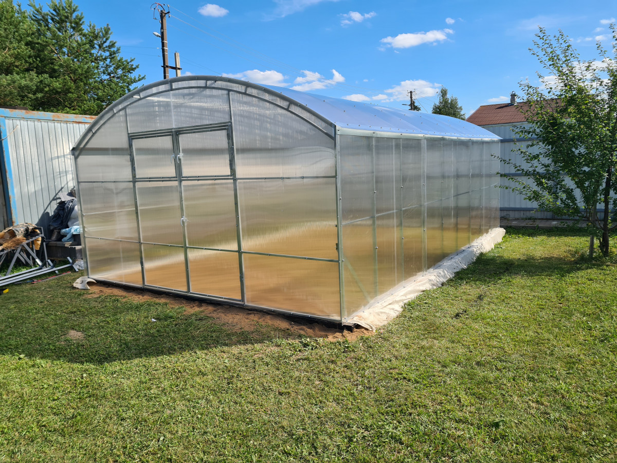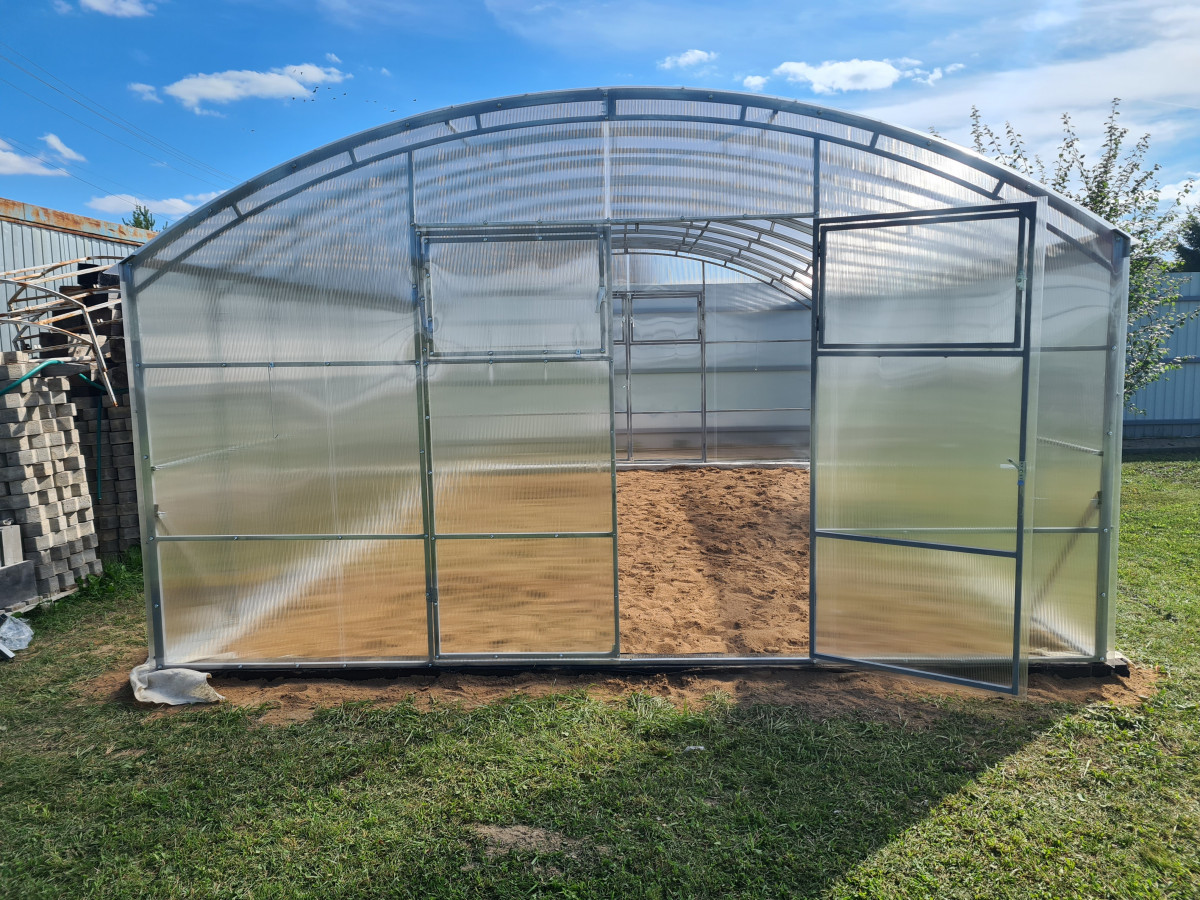 • широкая 4 м, ширина теплицы позволяет организовать 3 широкие полноценные грядки с комфортными проходами между ними;