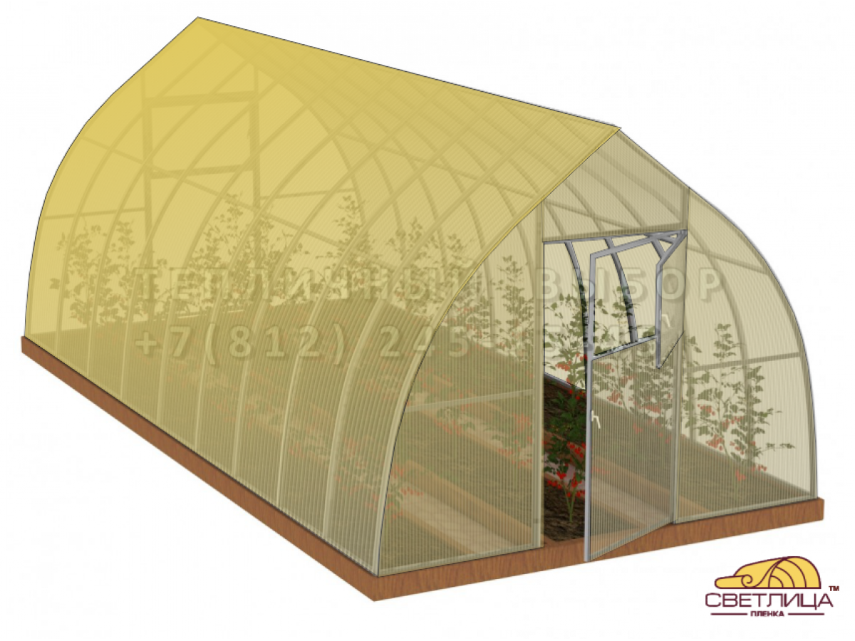 • укрывной материал - легендарная пленка «Светлица» толщиной 150 мкм, имеет уникальный состав, который делает ее прочной, эластичной и долговечной (не менее 7 лет без снятия на зиму)