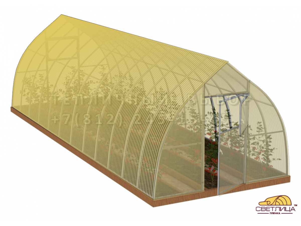 • укрывной материал - легендарная пленка «Светлица» толщиной 150 мкм, имеет уникальный состав, который делает ее прочной, эластичной и долговечной (не менее 7 лет без снятия на зиму)